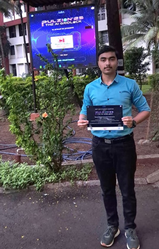 Congratulations! Aryan Ghadekar, SY-CS, secured the 1st Runner Up place in the Paper Presentation Event at Pulzion’25 – The AI Gridlock, organized by the PICT ACM Student Chapter.