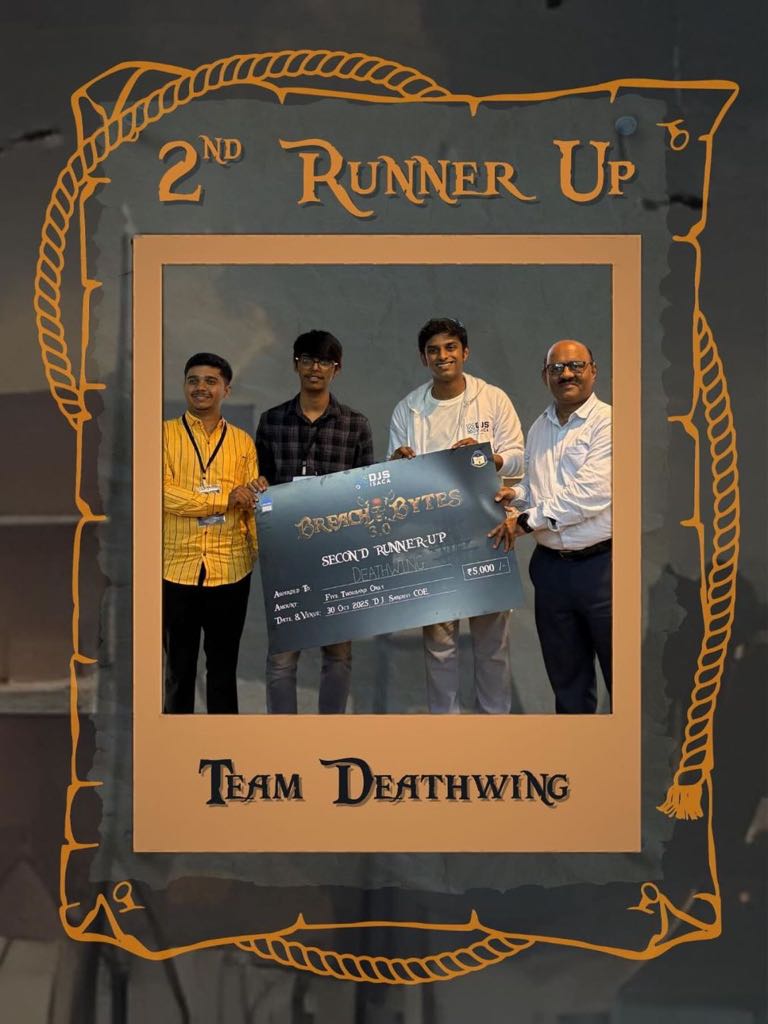 Team Deathwing secured 3rd position in Breach Bytes 3.0 organised by DJS, Mumbai