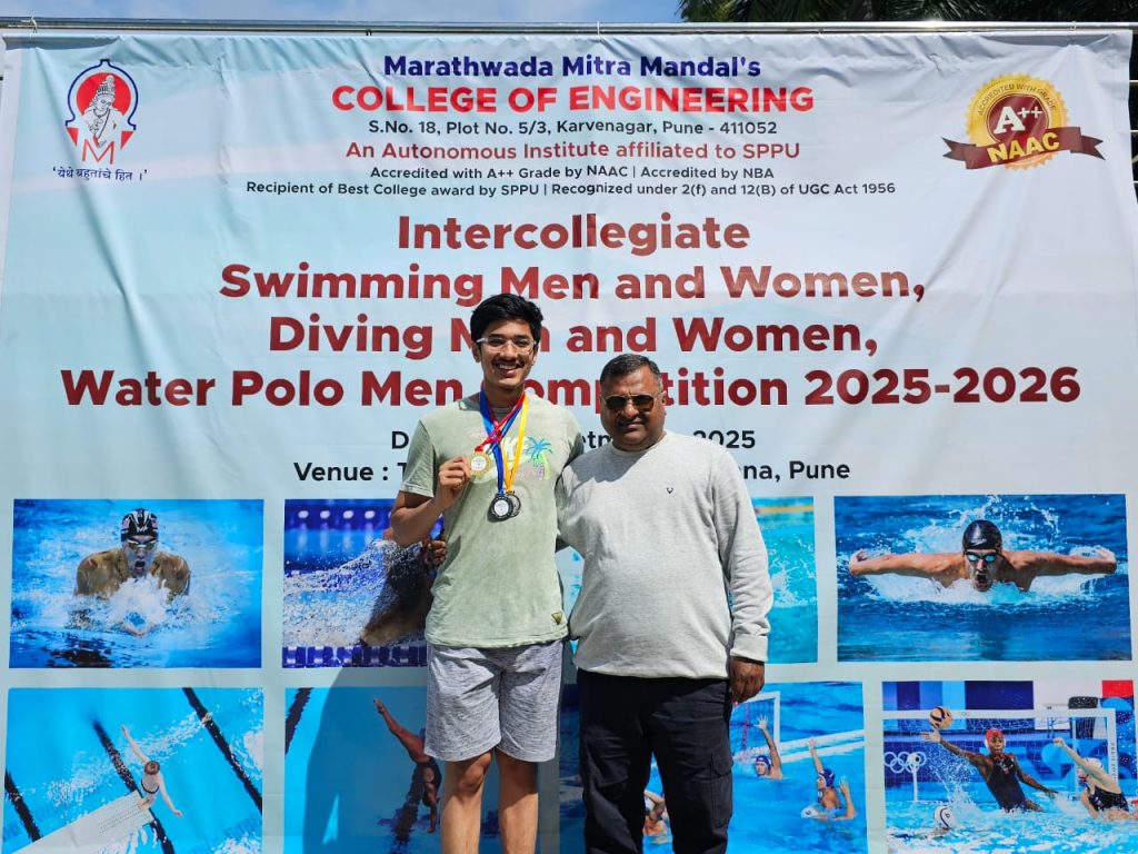 Congratulations to our Student Rajwardhan Shinde who Got Gold Medal 🥇in 400 IM, 3rd 🥈in 200 IM, 100 Fly, & 200 Fly & Gold 🥉 in 50 Fly in SPPU PCZSC Intercollegiate swimming competition organised by MMCOE PUNE